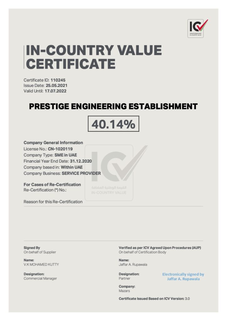 Prestige Engineering Establishment Peal Plaza Building, Mezz. Floor Office No. 7, Khalidiya, Abu Dhabi.